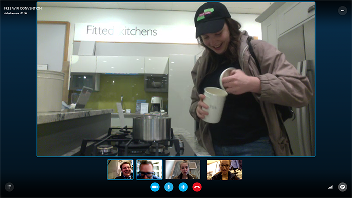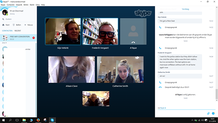 In the context of the Artist Ambassador Convention, we organised in collaboration with Gijs Velsink a skype meeting in which participants will meet each other, using the free WIFI of shops. Not the coffeebars, but the clothing stores, garden centre and bookshops.