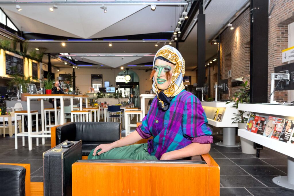 Maybe Boozegeoisie applied for a position as a library employee at Huis73 in ‘s-Hertogenbosch. It would be their dream job to work in a library in drag. It’s part of their mission as drag royalty: to challenge the status quo, dare people think beyond their own references and make ‘s-Hertogenbosch (the city where Maybe lives) a place where more people feel welcome and at home. The organisation invited Maybe for a job interview.