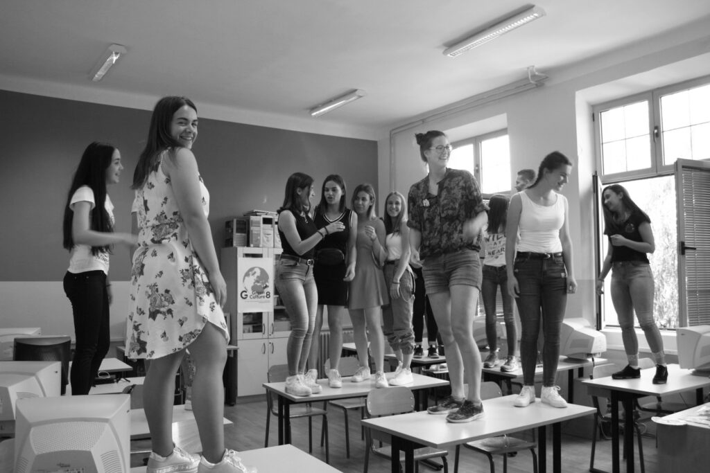 The students were in shock. In Montenegro, the status of a school teacher is seen with lots of respect. An adult breaking the rules and inviting them to stand on the tables as well, made a big impact. It started a conversation about fixed patterns and behavior. How can you change your own attitude towards that?