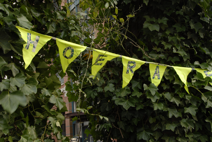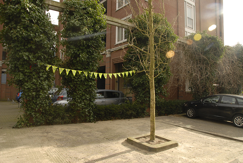 After the roots and stump were fully removed, the municipality planted a new tree. We made garlands for the newborn tree which replaced the felled Plantanus Hispanica.