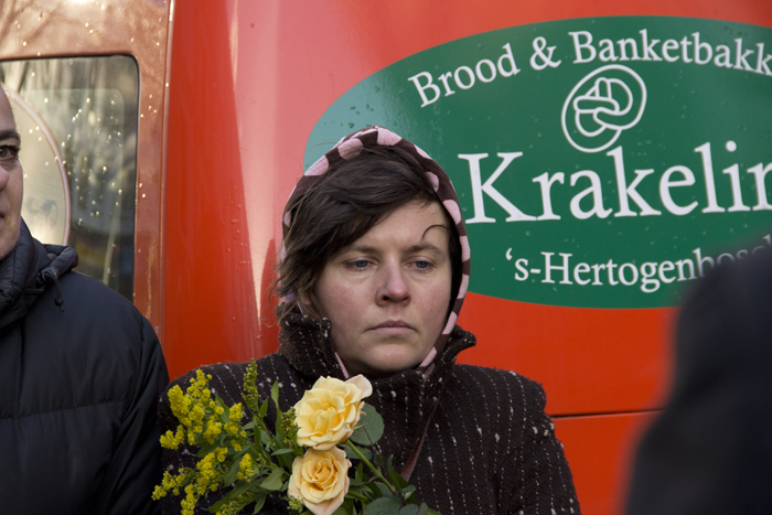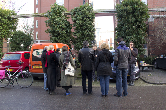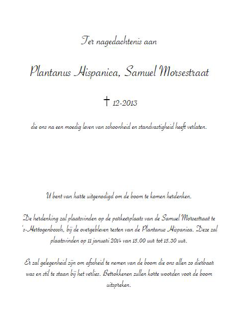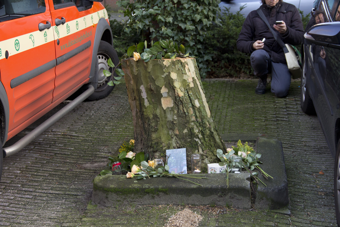 A tree got chopped down. We saw this event happening and decided to organise a moment for the felled Plantanus Hispanica. We invited all the residents from the apartment across the parking lot, who could see this tree from their houses. None of them showed up at the memorial. The people who showed up were classmates, friends and some passers-by.